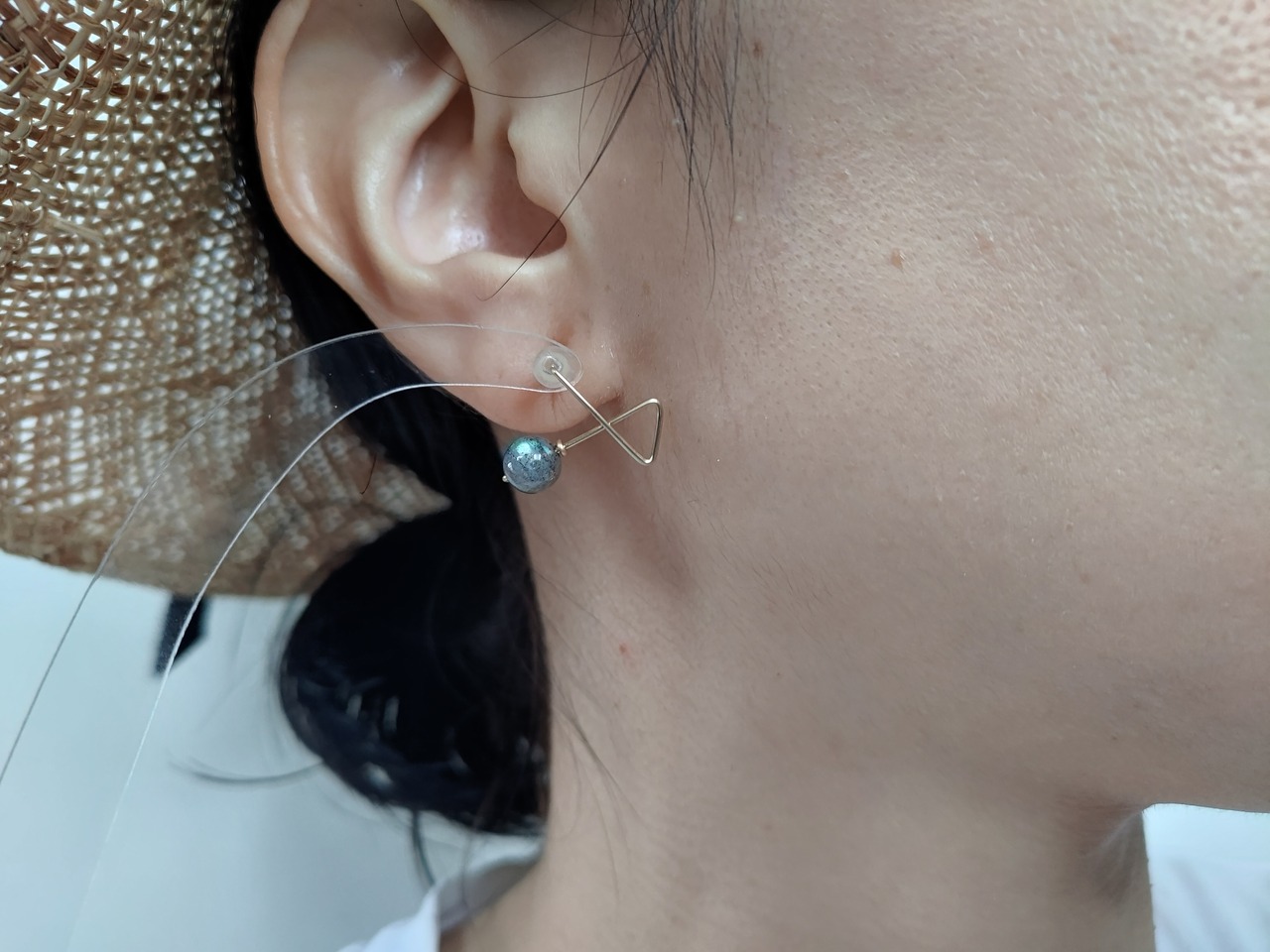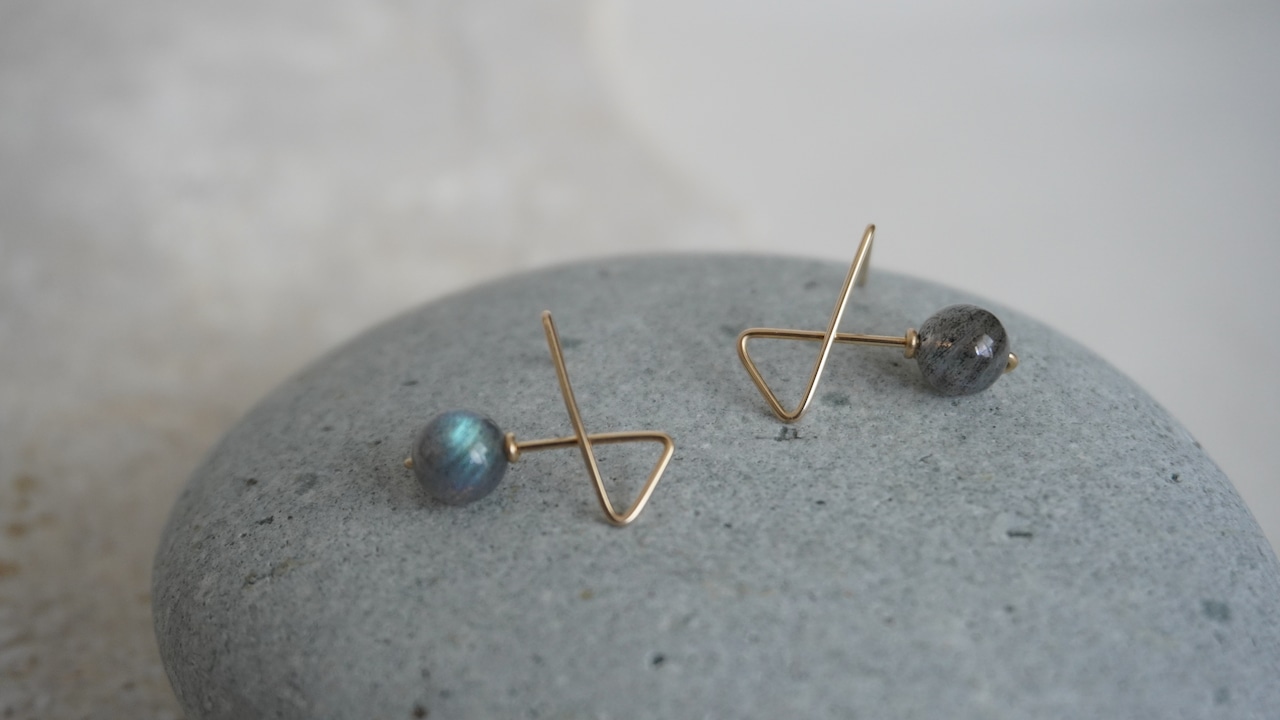 三角に曲げたワイヤーと丸い石をバランスよく配置して、シンプルだけどちょっとした遊び心を入れて仕上げた拘りの1点