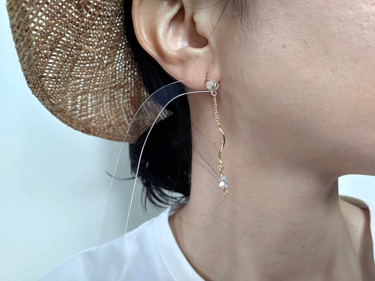 チェーンと揺れるダイヤモンドが光を受けて繊細にきらめきます