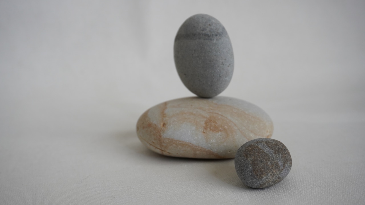 石には穴開け加工がされており、支柱となる棒を挿して重ねます。