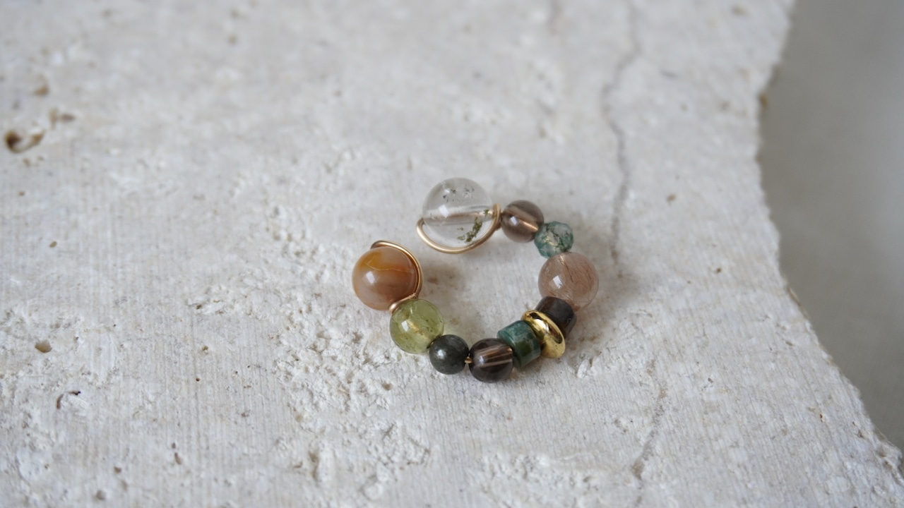 小さな天然石をMIXしたイヤーカフ